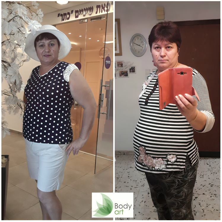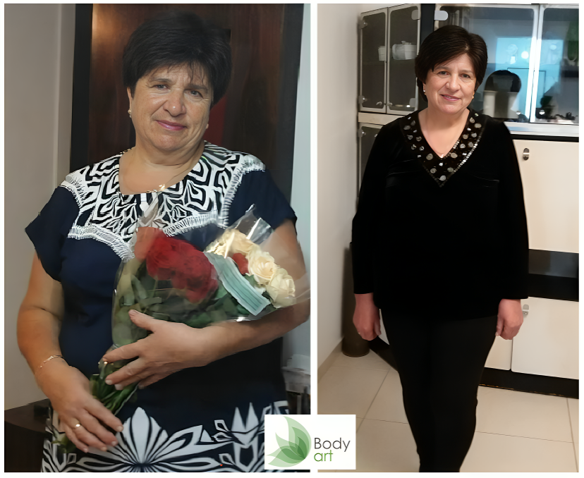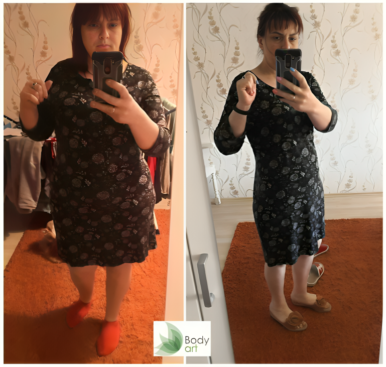 до начала работать с компанией боди-арт Я весила 111 кг; на момент записи этого видео мой вес составляет 88 кг; на фотографии после мой вес составляет 79.300 килограмм — минус 31.7 кг.